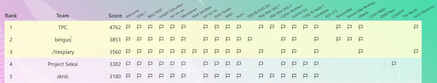 いやー疲れました。とりあえずwebが2問解けてweb担当としてある程度チームに貢献できたかなぁという気持ちとeasyって何という気持ちがごちゃごちゃになっています。CTFの後は毎回不完全燃焼かもしれない。upsolveとwriteup執筆までがCTFということで、あと2問のupsolveも頑張ります。